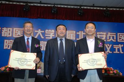 安贞医院院长张兆光教授代表安贞医院致辞,医院将依托两位院士及其创新团队,在心肺血管等领域进行创新研究,寻找心肺血管等疾病的发病机理,最后将研究成果应用于临床实践,以造福百姓。